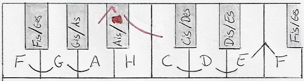 - Warum heißt der Ton B der F-Dur-Tonleiter[1] nicht Ais? Es ist doch die gleiche Taste, die gespielt werden muss und somit doch der gleiche Ton? Ein Grund ist, weil kein # sondern ein ♭in den Hilfslinien steht, aber es könnte genauso ein # vor dem A stehen, wodurch das A zum Ais werden würde…