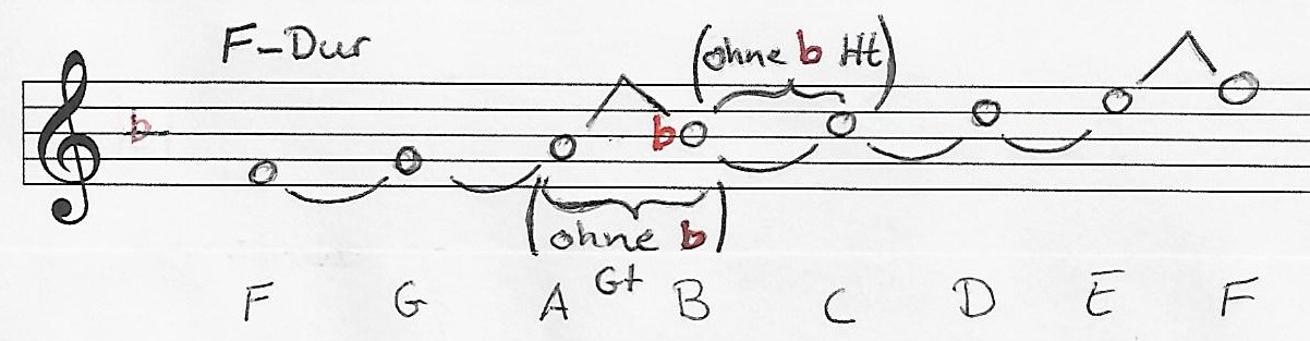 Abbildung 3 - Wirkung des b's in der F-Dur-Tonleiter.